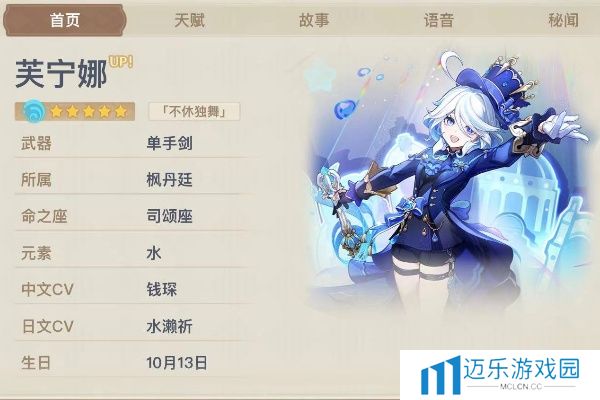 原神芙宁娜是一位利用全队生命值展开队伍攻势的角色,能够通过重击切换自己的始基力属性,并每隔一段时间在普通攻击命中时造成对应荒性或芒性的水元素伤害,在场上可以协助角色战斗。