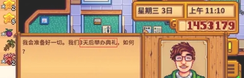 答:给结婚对象送礼好感度10颗心后,赠送美人鱼吊坠,即可在镇上举办婚礼。