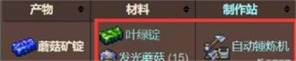 4、蘑菇锭矿需要玩家们使用叶绿锭和发光蘑菇,然后在自动锤炼机中可以制作出来。