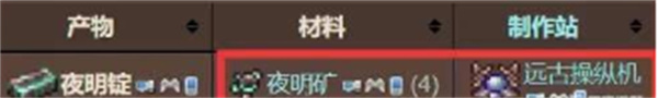 2、夜明锭需要我们用4个夜明矿然后来到远古操纵机制作出来。