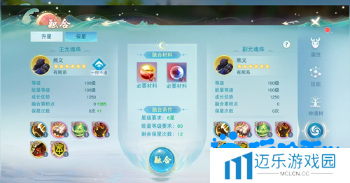 3、融合后的累积点可以大幅度提高元魂珠的各类属性,同时保星融合还有几率领悟新技能。