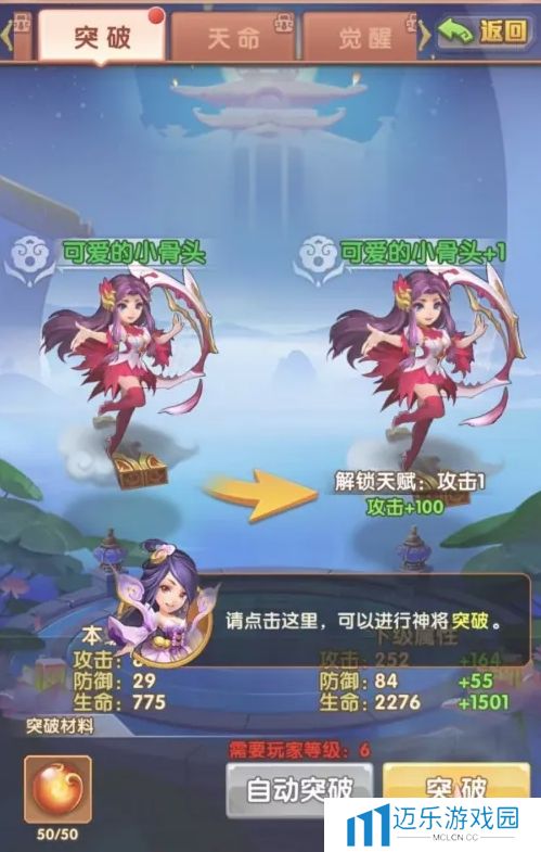 3、在神将突破页面,消耗一定数量突破材料天命丹,然后点击突破。