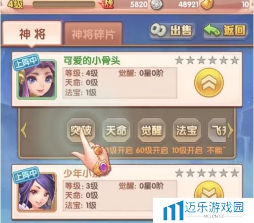 神将的突破需要消耗一定数量的天命丹,需要在主线任务、副本掉落、商店购买获取天命丹。