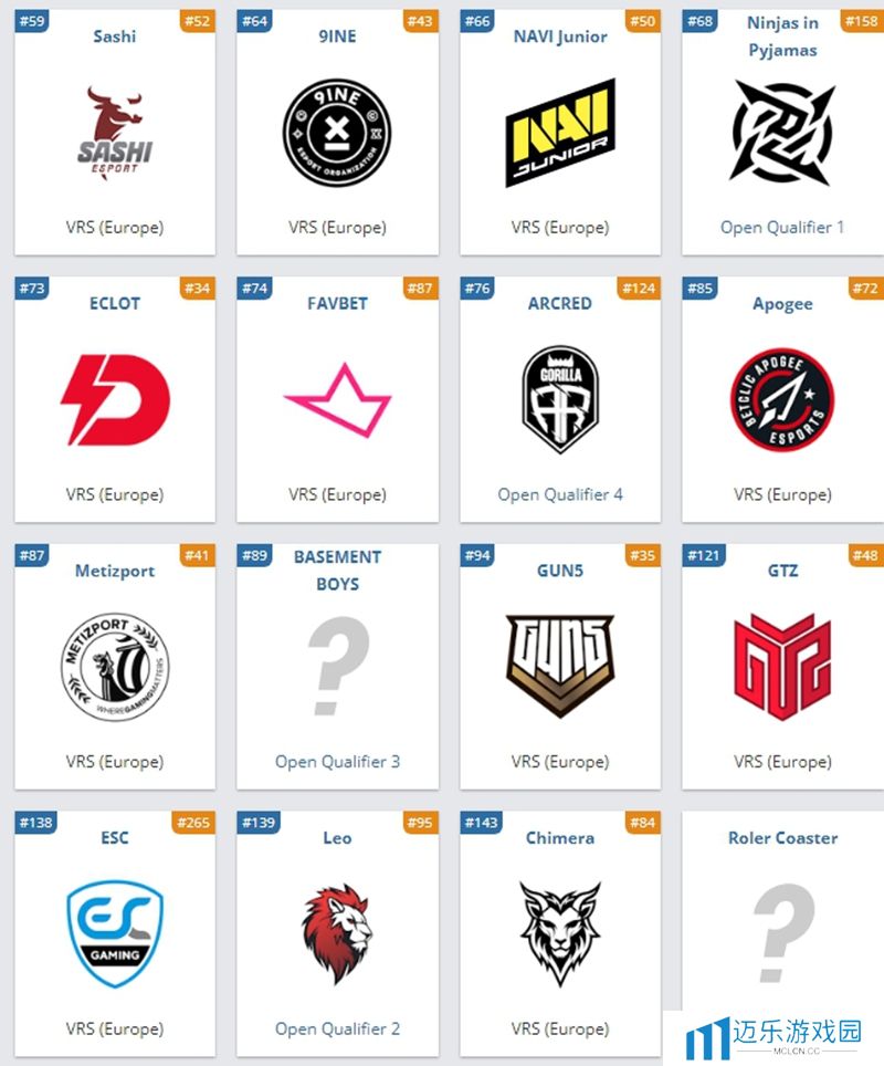 封闭预选赛聚集了众多欧洲强队,除了Spirit和NAVI的青训队之外,还有