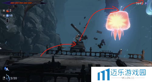 6、到达平台之后往左走一点即可抵达如图所示位置,击碎即可获得精灵沙瓶。