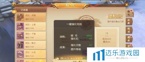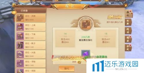 4、等待片刻后,就可以对我们的武器装备进行强化的操作;