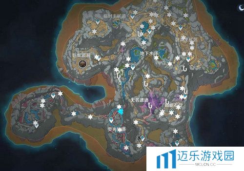 下方为宝箱点星号 ,包括挑战,解密,仙灵(由于我是拿到宝箱才标的点,如果标点处没有宝箱的话,就在附近找一下挑战点,或者是仙灵)