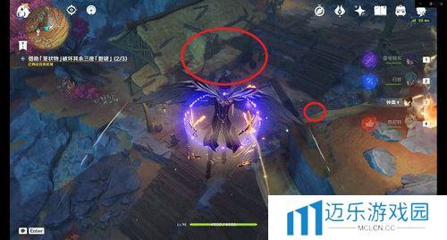 破坏第一处的「磐键」后可以使用跳跃平台(红圈)出去并前往第二处「磐键」方向(根据任务指示)