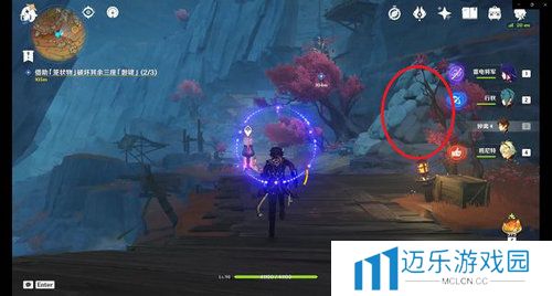 到达第三处「磐键」后可以击碎此大型碎石(里面是一个跳跃平台)快速到达上方