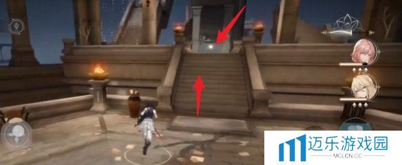 2、视角向后转,从楼梯上去可以看到一个光点。