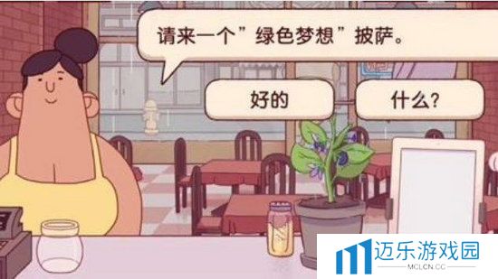 1、绿色梦想披萨就是青叶梦想披萨,从顾客需要的披萨名字中玩家可以获知一部分的披萨制作线索就是绿色,然后点击【什么】就可以查看具体要求;