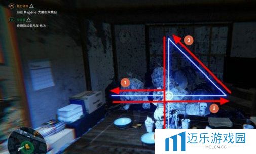2、在*屋前消灭被大洞引来的异访者,在房间中对准不停变化的茶几按照下图所示顺序和方向结印使恶灵显形