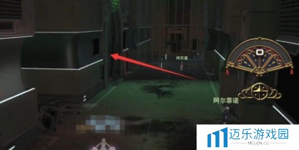 2、对话后,往前直走再左转,互动大门的发光点。