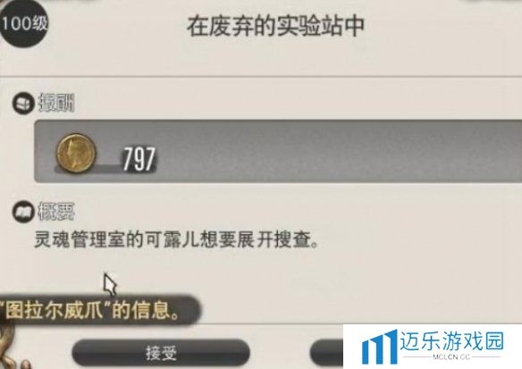 8、对话结束后,返回与古·拉哈·提亚对话,再去霓虹酒杯后房与谢尔对话,即可完成任务。