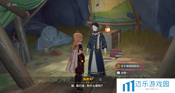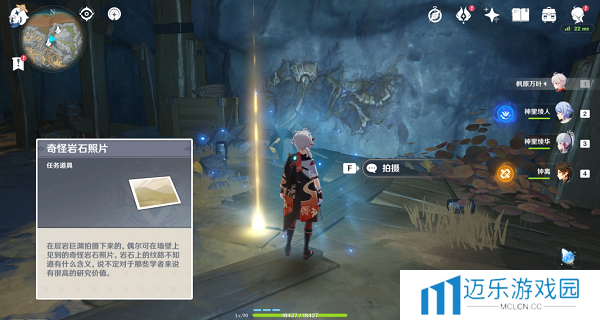持有任意一张 「奇怪的岩石照片」,即可与学者海迪夫对话,触发任务「古代生物调查」。